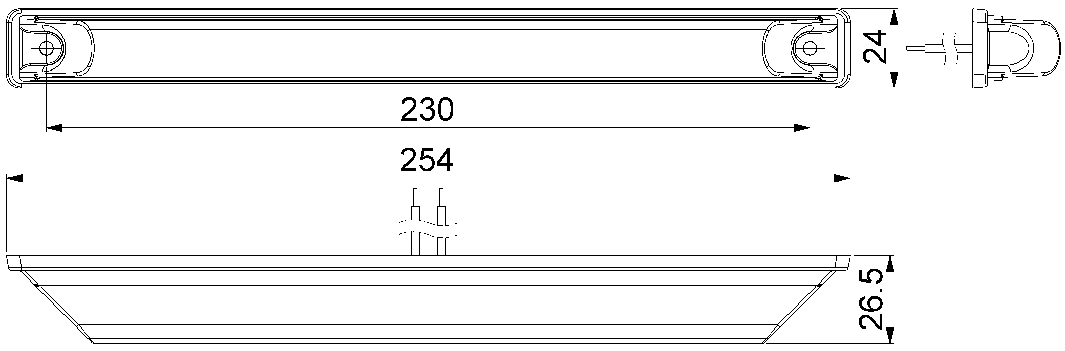 Фонарь габаритный боковой (оранжевый), длинный.