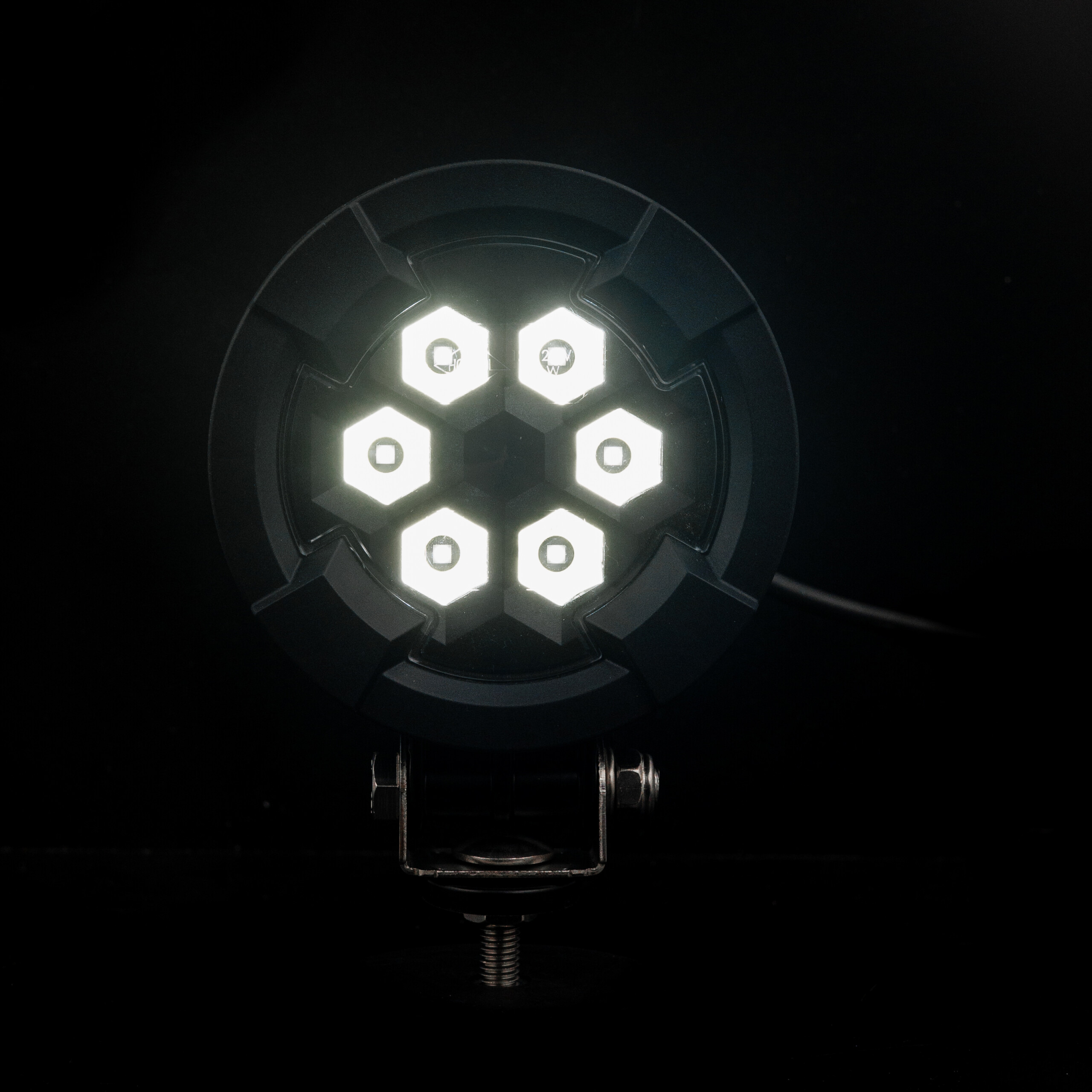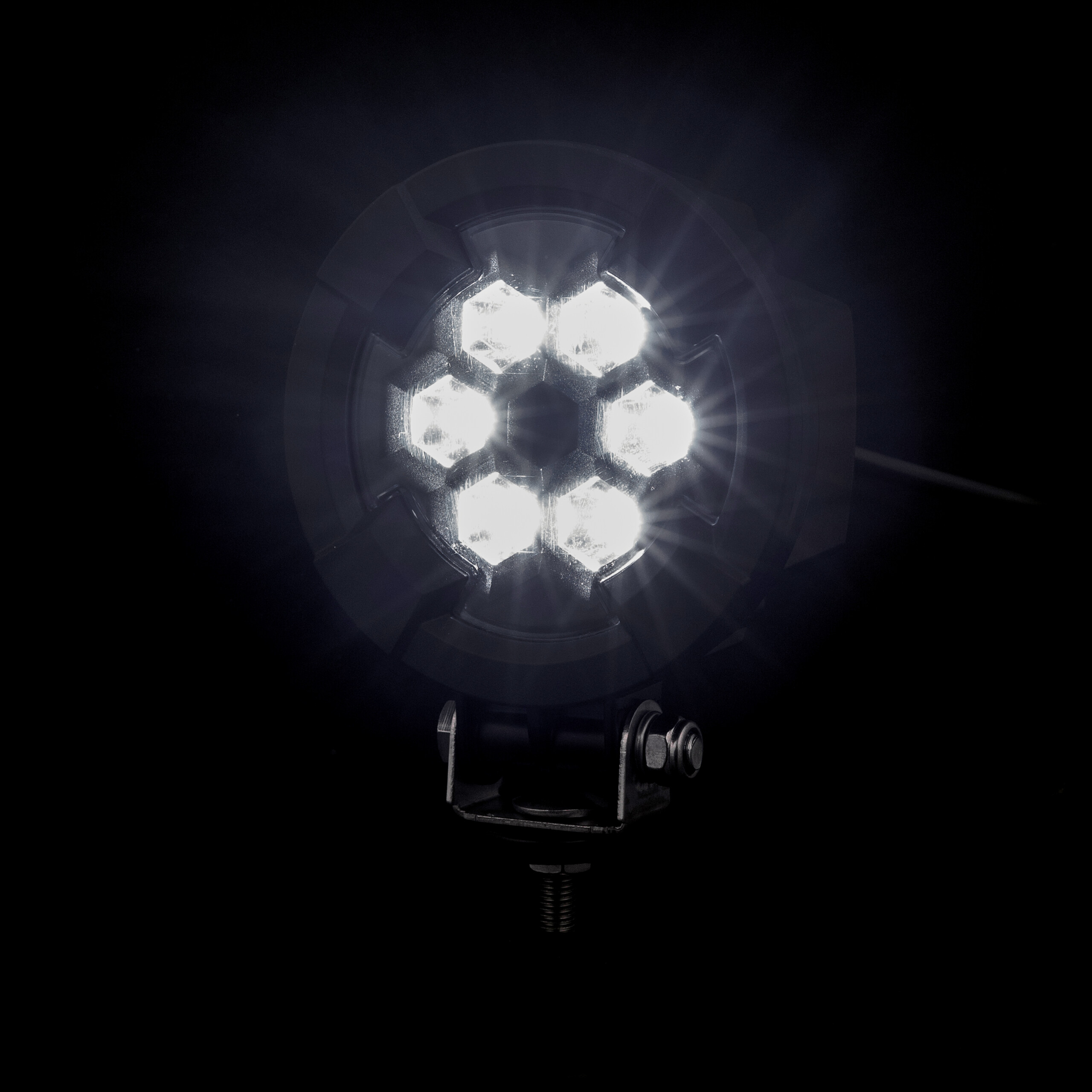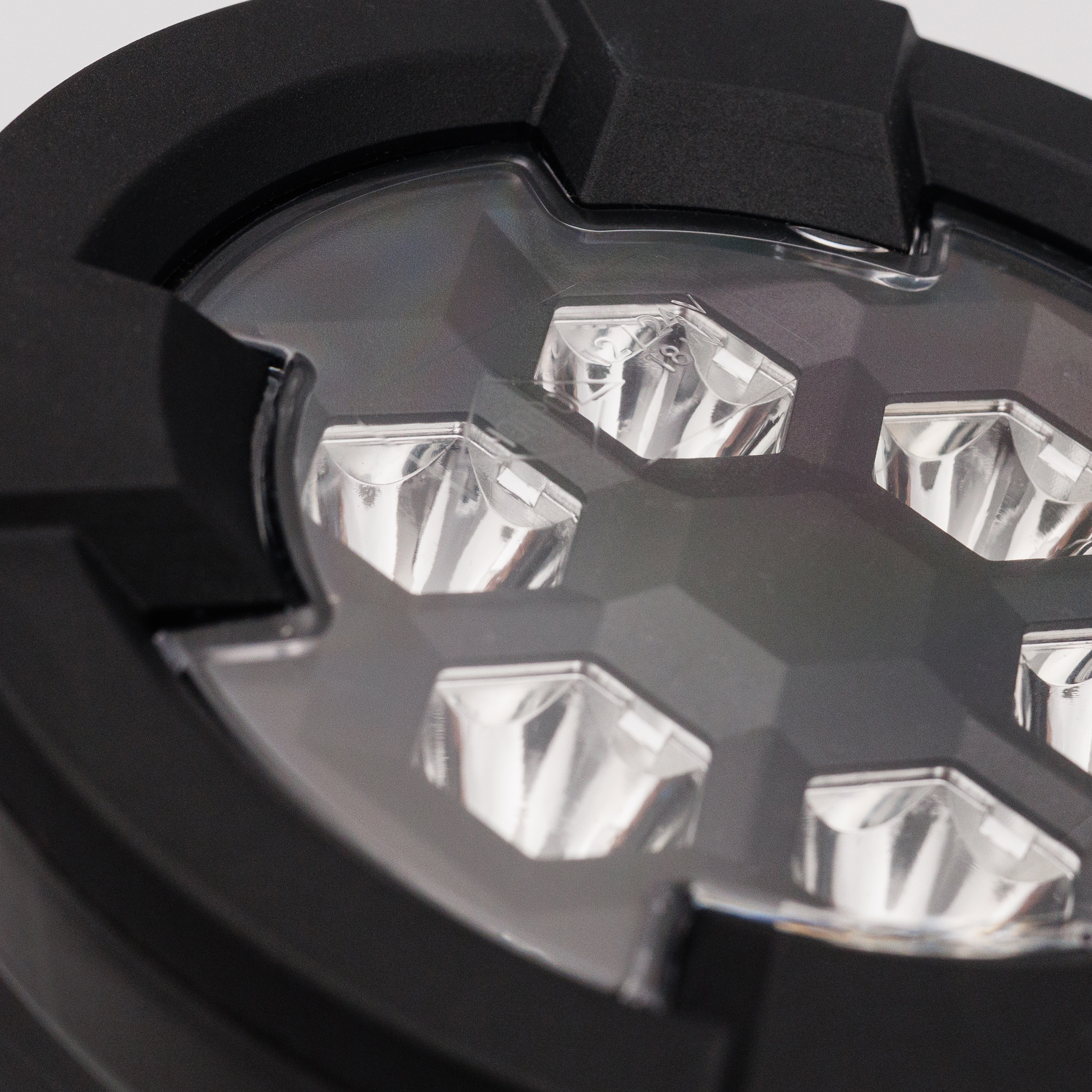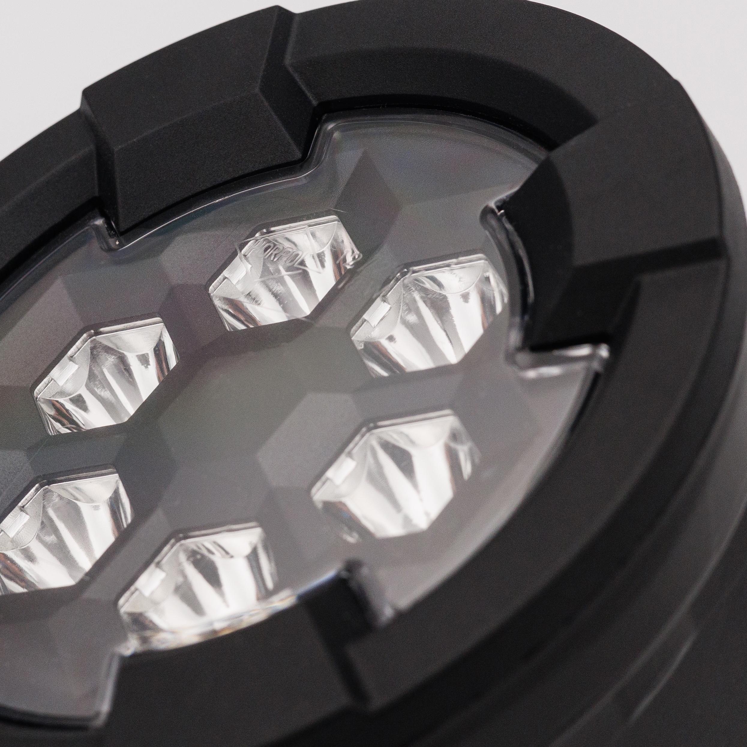 LRD 3187 RAPTOR — это надёжный источник света, созданный для работы в полевых условиях, где важны эффективность, долговечность и безопасность. Оснащённый 6 мощными светодиодами общей мощностью 18 Вт, он генерирует световой поток 1600 лм с холодной цветовой температурой 6500 K, обеспечивая яркое и комфортное освещение рабочей зоны в тёмное время суток. Круглая конструкция фонаря с чёрной решёткой гарантирует направленный световой поток, который эффективно освещает рабочее пространство и минимизирует риск ослепления оператора. Регулируемая опора позволяет точно настроить угол освещения в зависимости от требований и характера выполняемых задач.