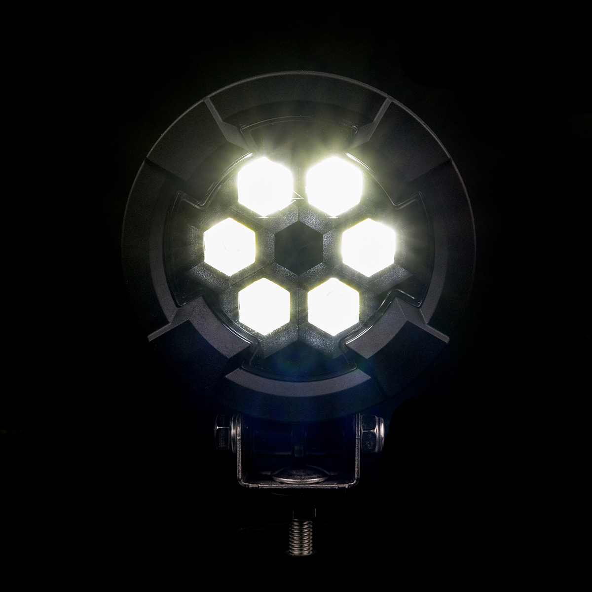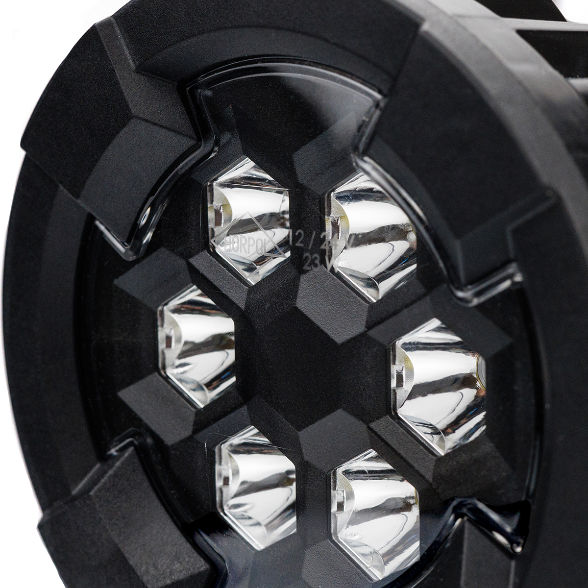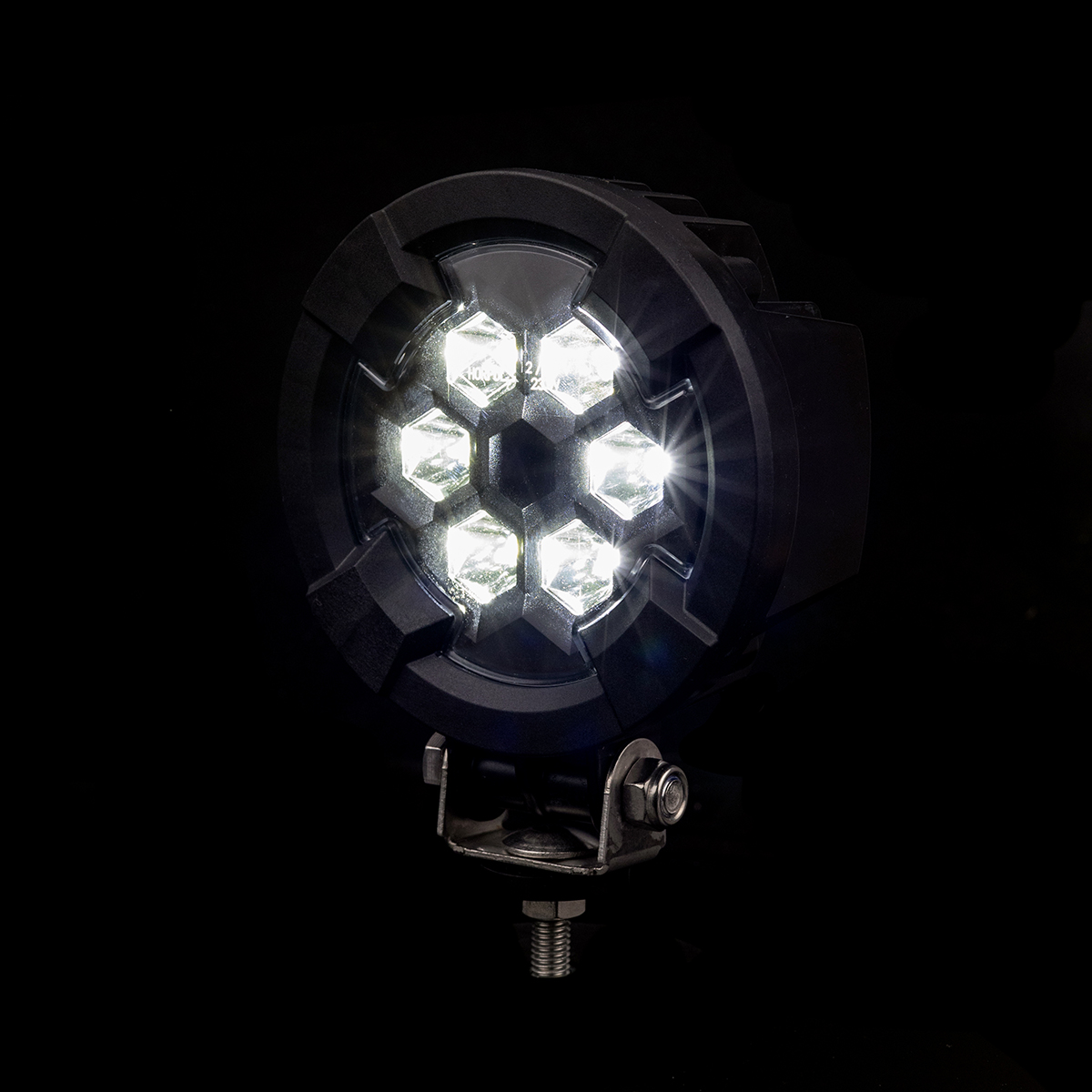 Прочная круглая конструкция с чёрной защитной решёткой направляет свет точно туда, где он нужен, снижая риск ослепления. Фонарь можно устанавливать по обеим сторонам транспортного средства, и он совместим как с электрическими системами 12 V, так и 24 V, что делает его универсальным решением для различных видов техники и машин. Регулируемая опора позволяет плавно изменять угол освещения и точно адаптировать свет под выполняемые задачи.